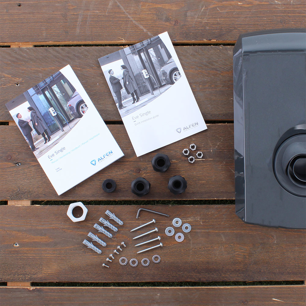 T.b.v. de montage van de lader worden kabelwartels, schroeven en pluggen meegeleverd.
