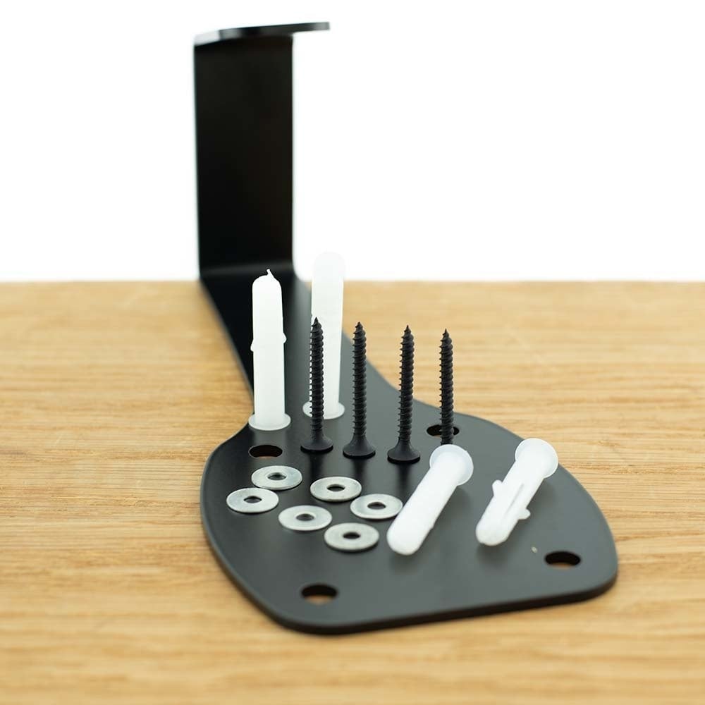 De houder is te bevestigen met 4 schroeven. De schroeven worden inclusief pluggen meegeleverd bij de houder.