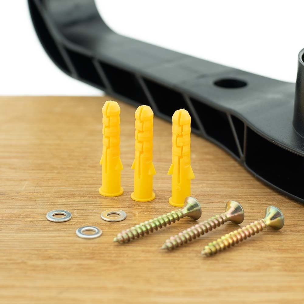De houder kan met 3 schroeven in de muur worden vastgezet. De schroeven worden meegeleverd (inclusief pluggen) bij dit product.