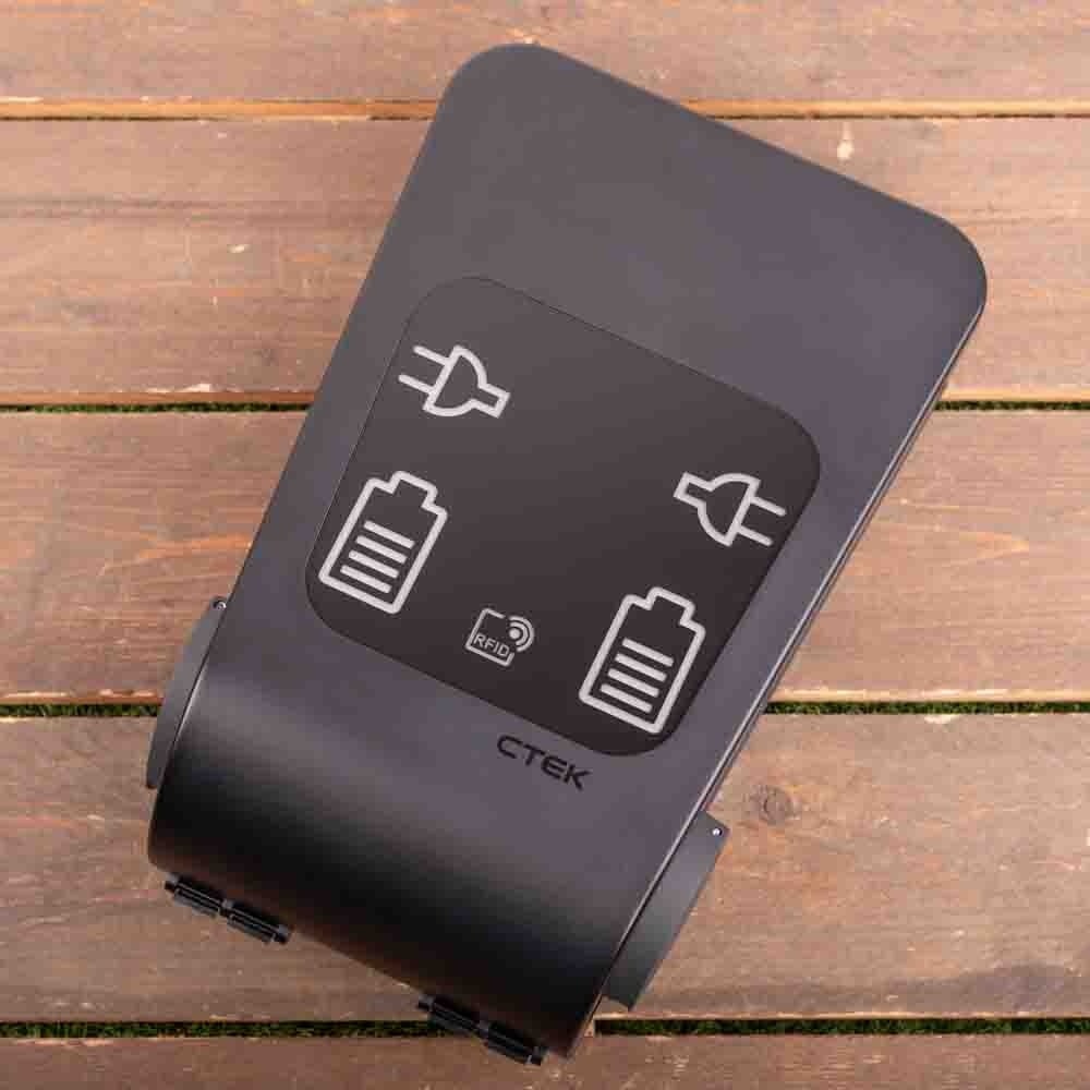 Op de laatste foto is een CTEK Chargestorm Connected CC3 Dubbele Outlet te zien met daarbij 2 kabels en 2 stekkerhouders. De 2 kabels en 2 stekkerhouders zijn niet inbegrepen in dit product. Dit is alleen als voorbeeld zo geplaatst.