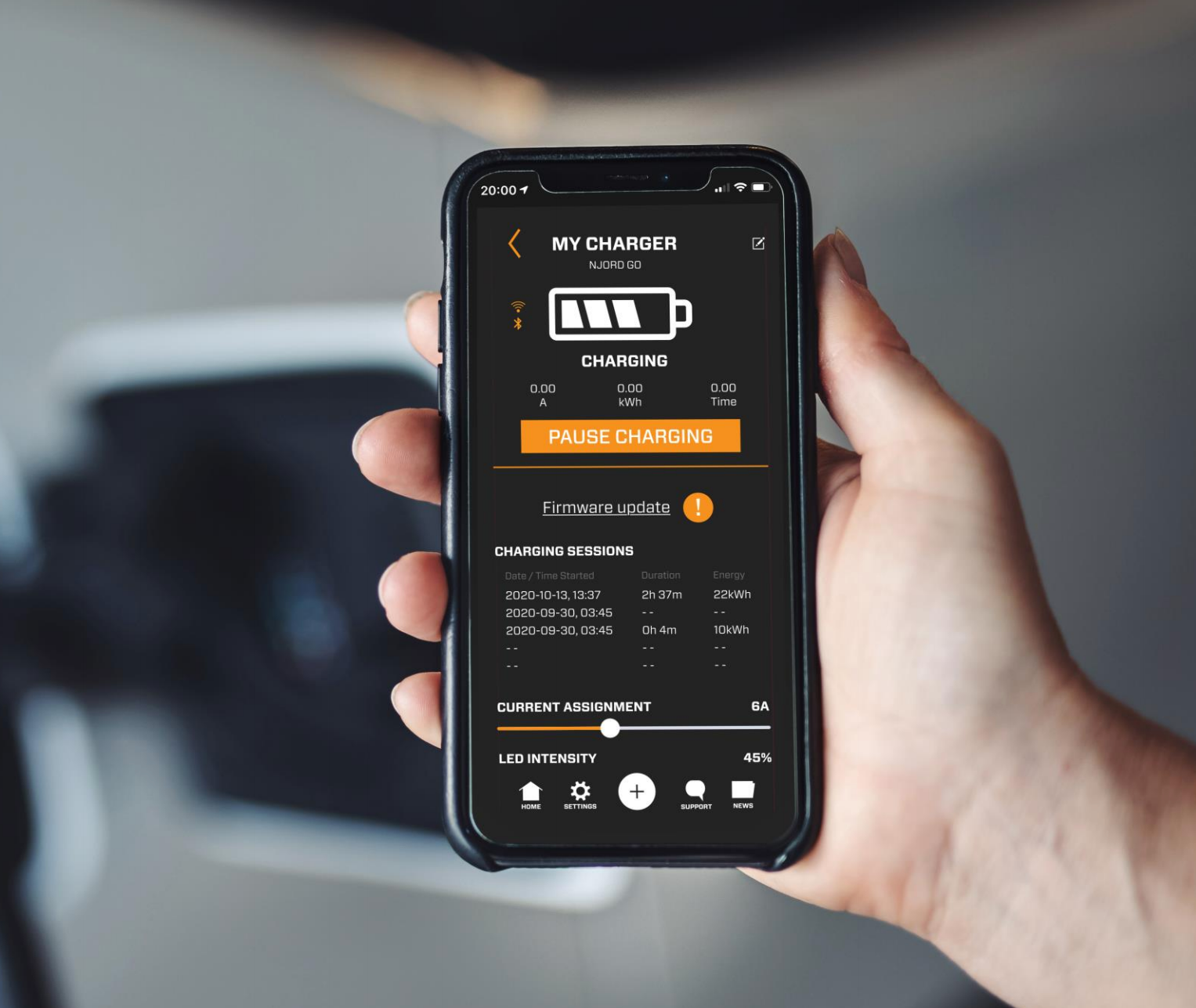 De bediening van uw mobiele lader verloopt gemakkelijk via de gratis app. U kunt uw laadsessies inzien en plannen, u kunt het laadvermogen instellen en u kunt zelfs de intensiteit van de LED's instellen. U kunt uw laadsessies stoppen, pauzeren en weer herstarten via de app. Verder ontvangt u updates via de app en is de lader via zowel Bluetooth als WiFi te koppelen aan uw telefoon.