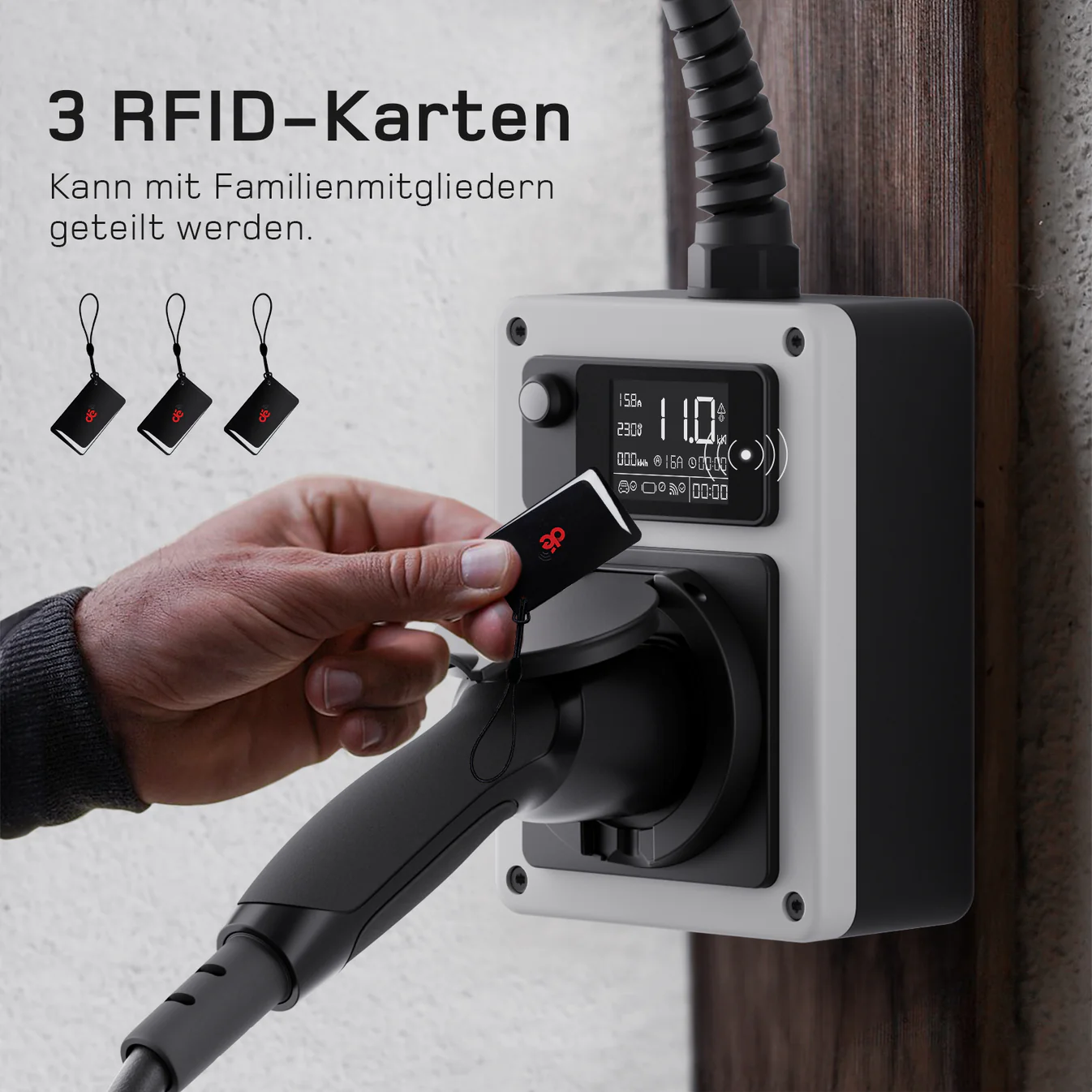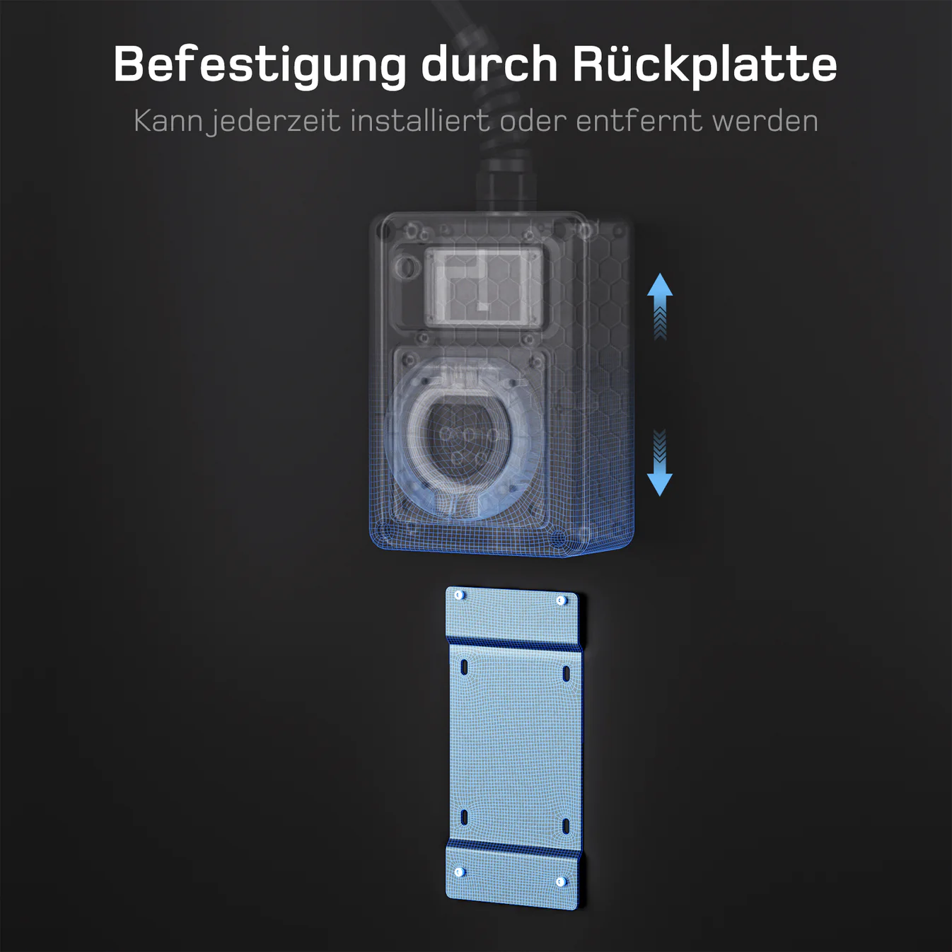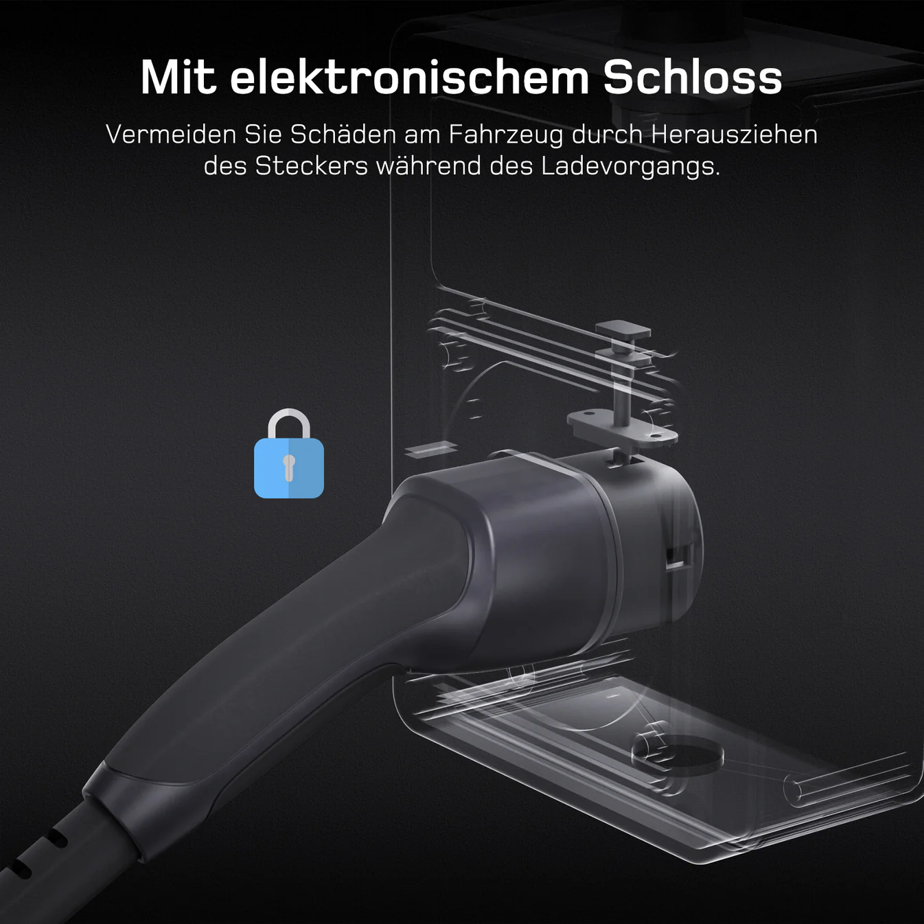 De mobiele lader is beveiligd tegen overstroom, tegen onder- en overspanning en een aardlek beveiliging Typ B 30mA AC + DC 6mA.