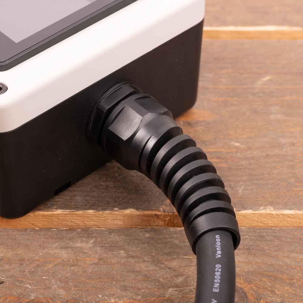 De mobiele lader is beveiligd tegen overstroom, tegen onder- en overspanning en een aardlek beveiliging Typ B 30mA AC + DC 6mA.