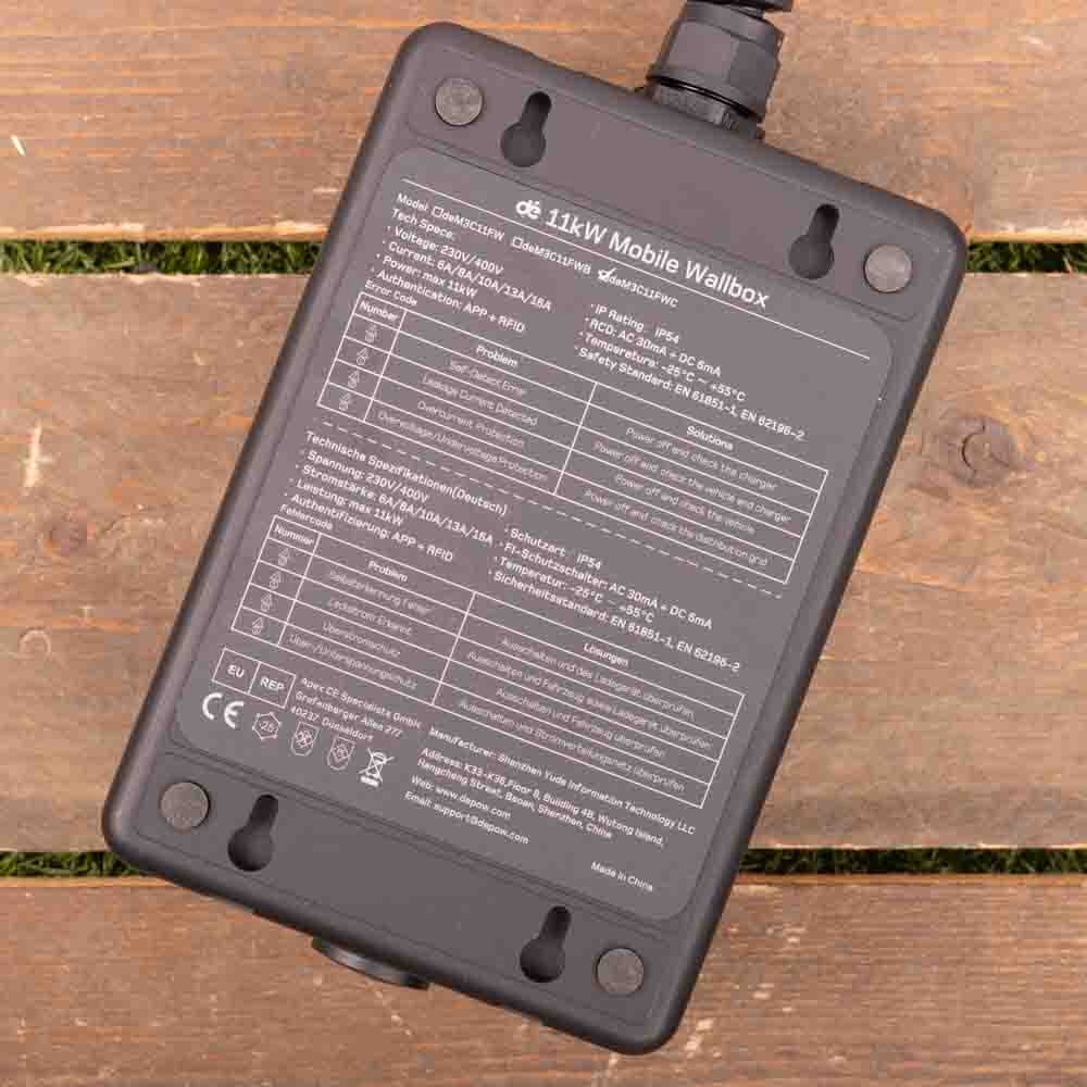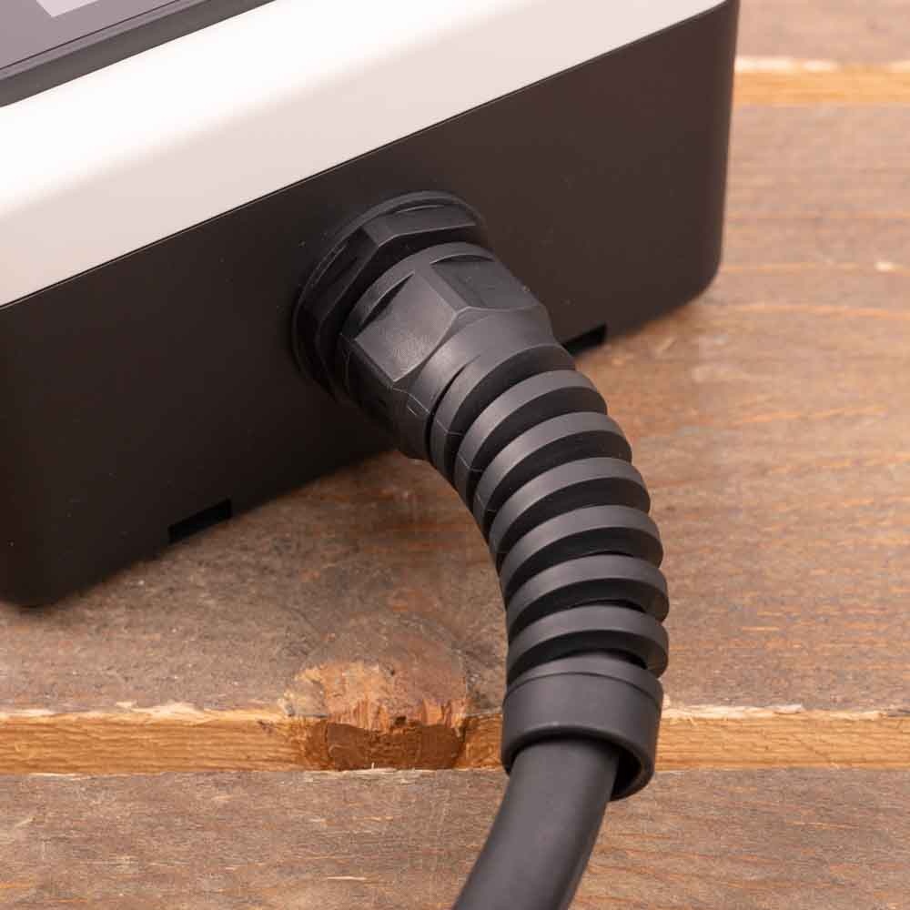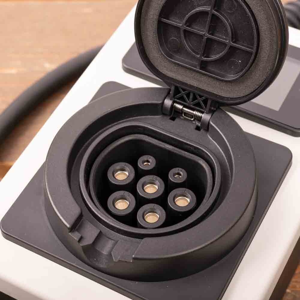 De mobiele lader is beveiligd tegen overstroom, tegen onder- en overspanning en een aardlek beveiliging Typ B 30mA AC + DC 6mA.