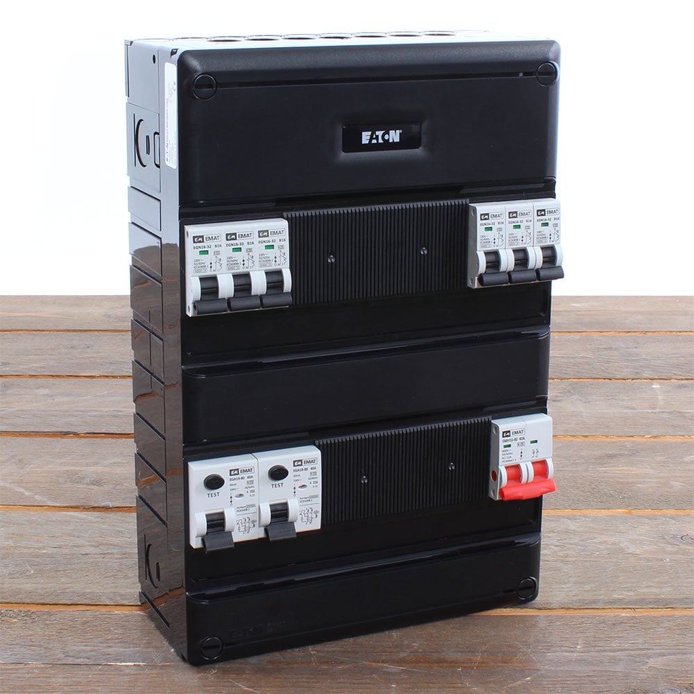 Deze EMAT Groepenkast in een EATON behuizing met daarin 6 groepen, 2 aardlekschakelaars en een 1 fase hoofdschakelaar is voorgemonteerd en klaar voor gebruik. Deze 1 fase basis groepenkast is hierdoor snel en makkelijk te installeren in een meterkast of op een andere plek waar u graag een groepenkast plaatst.