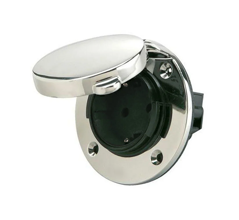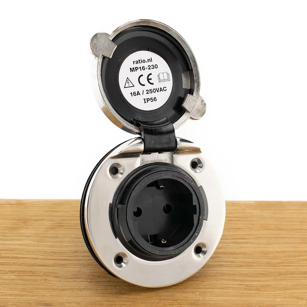 Deze Ratio RVS walstroomoutlet is te gebruiken voor uw boot, camper of caravan als 230V invoer. De outlet is alleen te gebruiken met daarvoor bestemde schuko walstroomkabels.