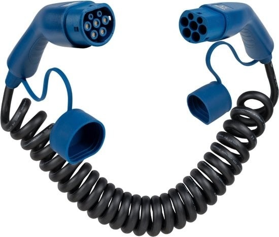 De gekrulde versie van de Type 2 laadkabel heeft het voordeel dat de kabel niet op de grond ligt als de kabel is aangesloten aan de auto en de laadpaal. De gedraaide kabel zorgt ervoor dat de kabel tussen de auto en de laadpaal onder spanning blijft staan en ligt hierdoor niet op de grond zoals dat bij een rechte laadkabel wel het geval kan zijn.